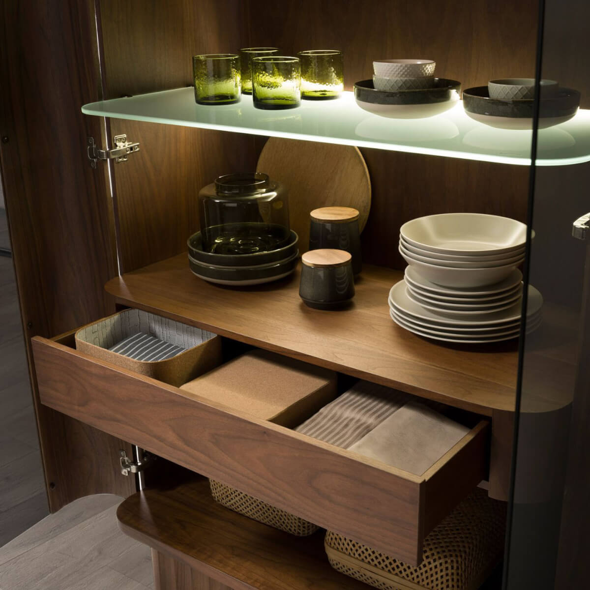 – Az üvegpolcnak köszönhetően bőséges tárolóhelye van edényeinek vagy evőeszközeinek.