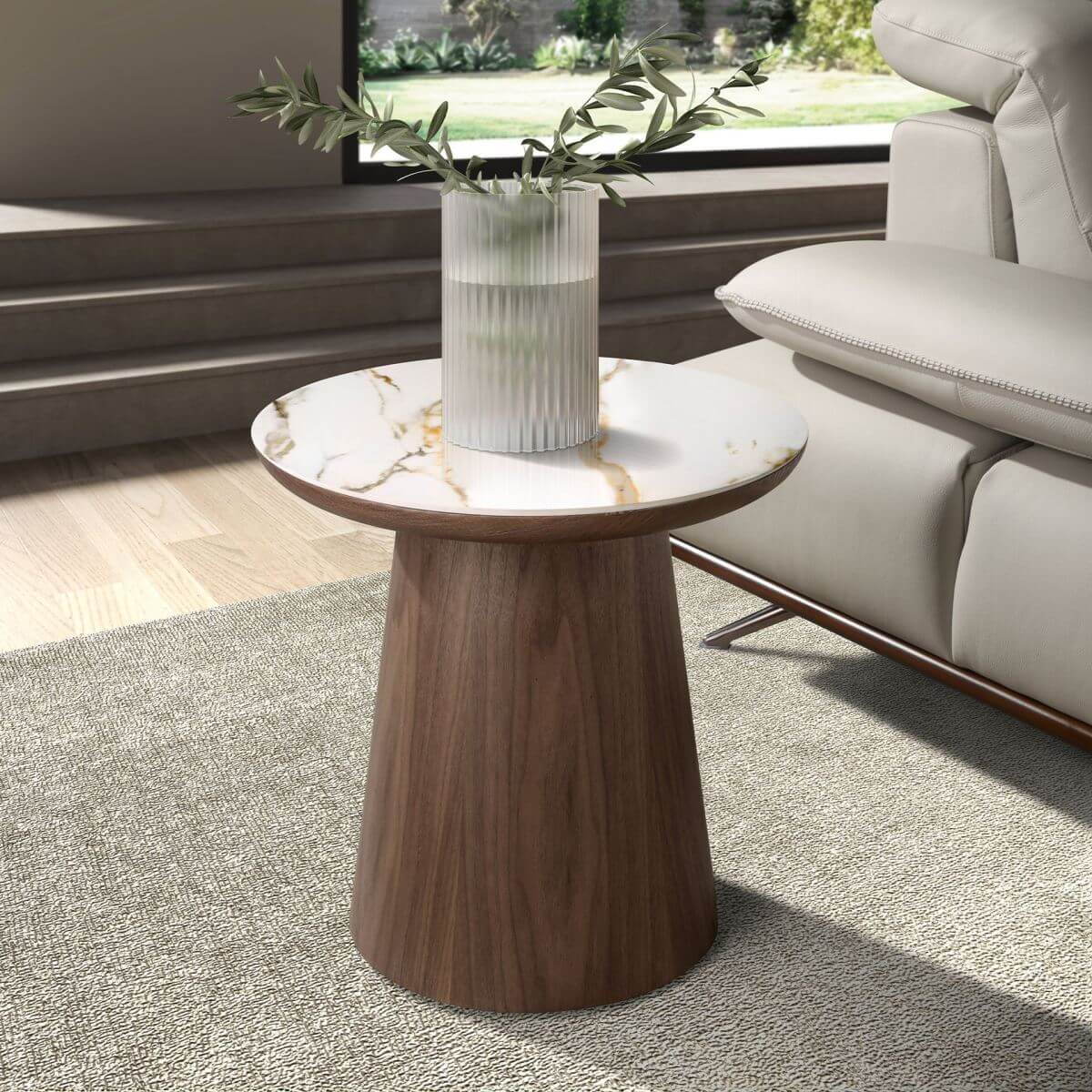 Marbléa nogal – porcelánmárvány és diófa kisasztal