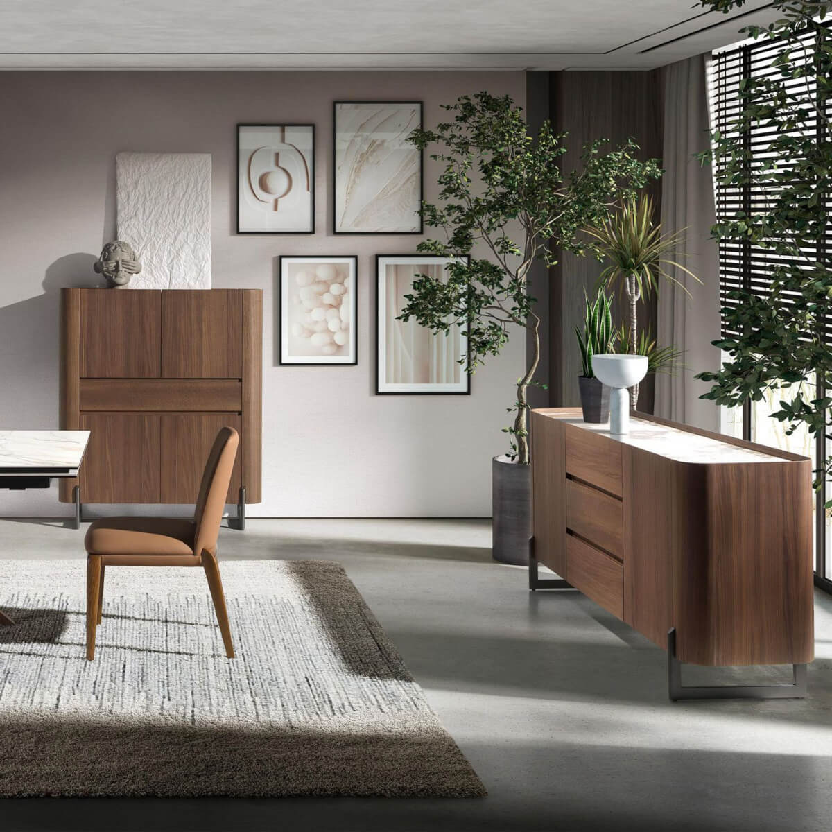 – Ez az elegáns, 0,5 mm vastag natúr diófa furnérral ellátott tálalószekrény modern és egyedi megjelenést kölcsönöz otthonának.