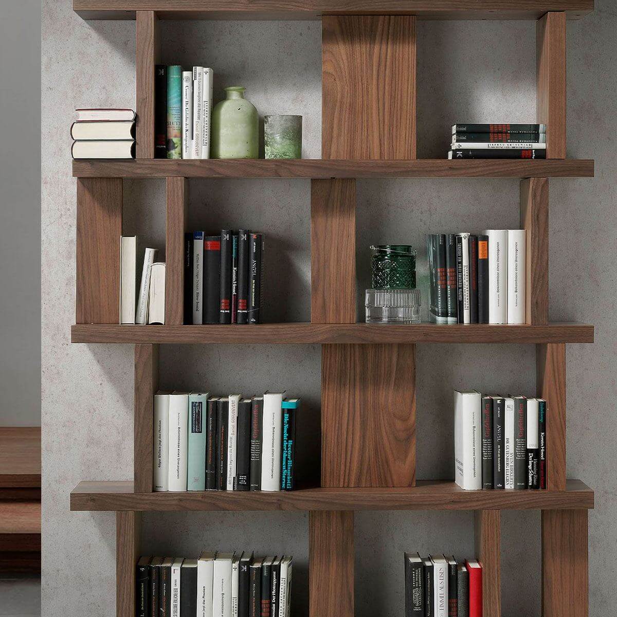 Ez az eredeti, szabálytalan polcokkal ellátott, modern dizájnú könyvespolc melegséget és tágasságot visz otthonod minden helyiségébe, hűen a legújabb lakberendezési trendekhez.- Sokoldalú és funkcionális jellege, valamint moduláris felépítése lehetővé teszi, hogy bármilyen típusú nappaliba, étkezőbe, olvasószobába vagy irodába illeszkedjen.- Minden könyvespolcunk a legmagasabb minőségű anyagokból készül, garantálva a tartós és funkcionális bútorokat.- Egyenes vonalaiknak és minimalista stílusuknak, valamint eredeti, szabálytalan kialakításuknak köszönhetően megkapod azt az elegáns és személyes jelleget, amit otthonodban keresel.