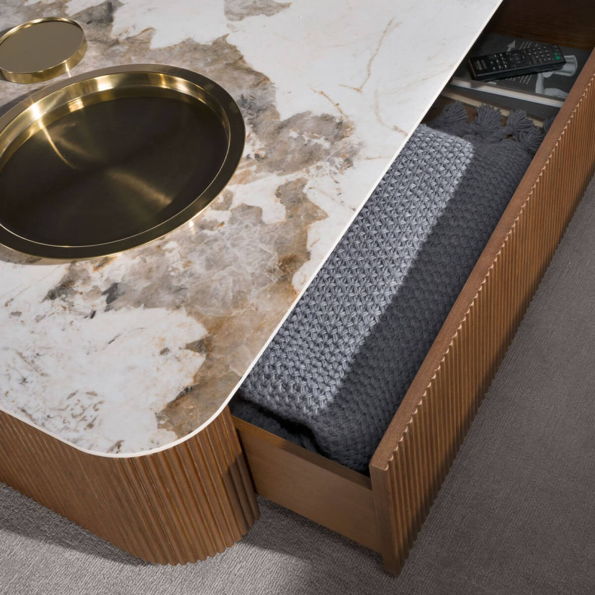 – Mind a kialakítása, mind a tárolóhelye tökéletessé teszi ezt az dohányzóasztalt a tágas és meleg hangulat megteremtéséhez, miközben minden a helyén marad.