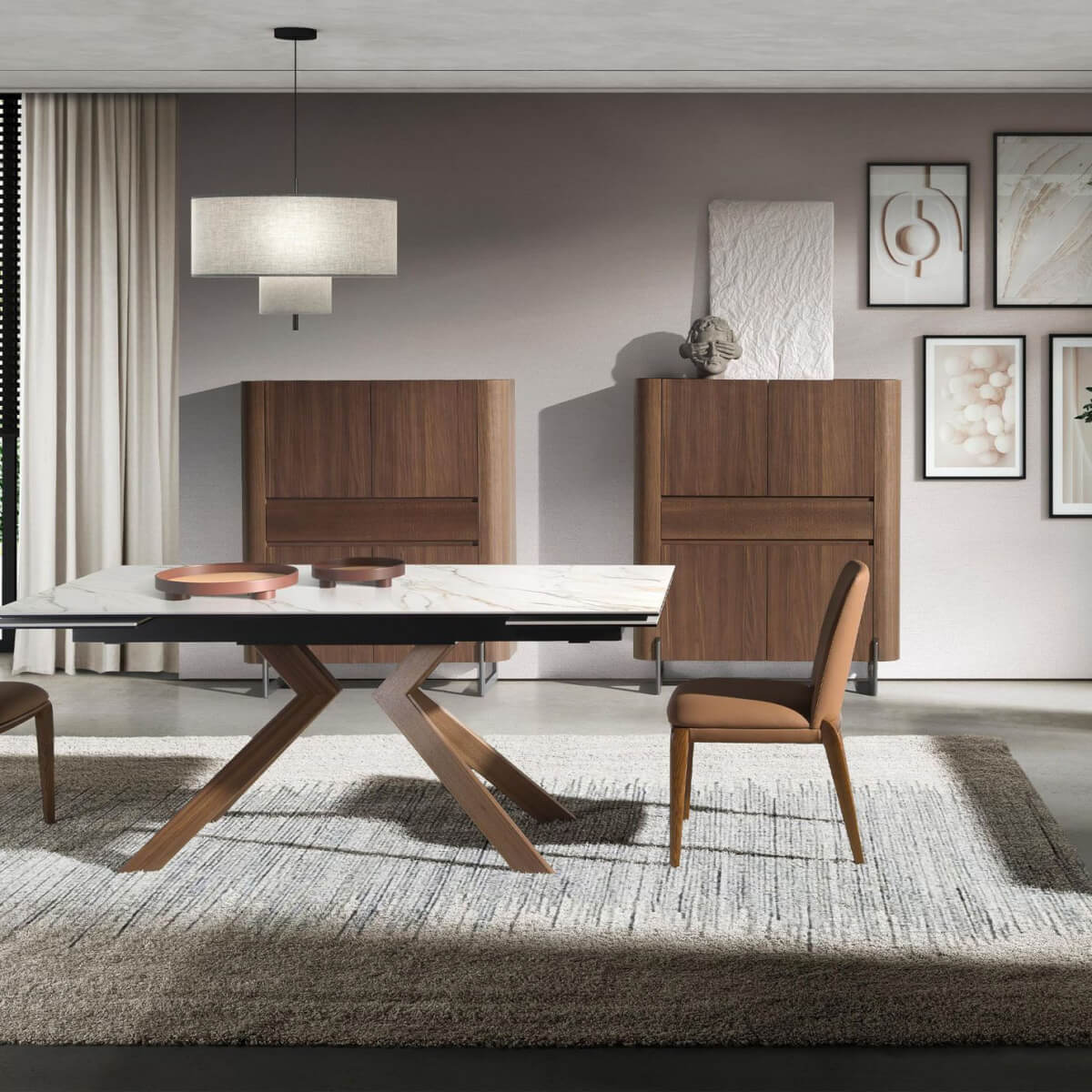 – Elegáns és kifinomult tálalószekrény 0,5 mm vastag natúr dió furnérból, amely modernitást és melegséget visz nappalijába vagy étkezőjébe.